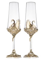 Подарочный свадебный набор 2 бокала для шампанского "Лебеди", в черной подарочной упаковке.