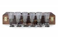 Рюмки "Русский Лес" 6шт VIP (уп . кожа) (Кабан, Лиса, Лось, Медведь, Волк, Утки)