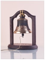 Размеры: 20 х 14 х 25 см. Материал подставки: массив дуба. Размеры колокола: диаметр 12 см, высота 12 см. Вес 1 кг. Материал колокола: колокольная бронза. Производство: Художественная колокололитейная мастерская, Россия.