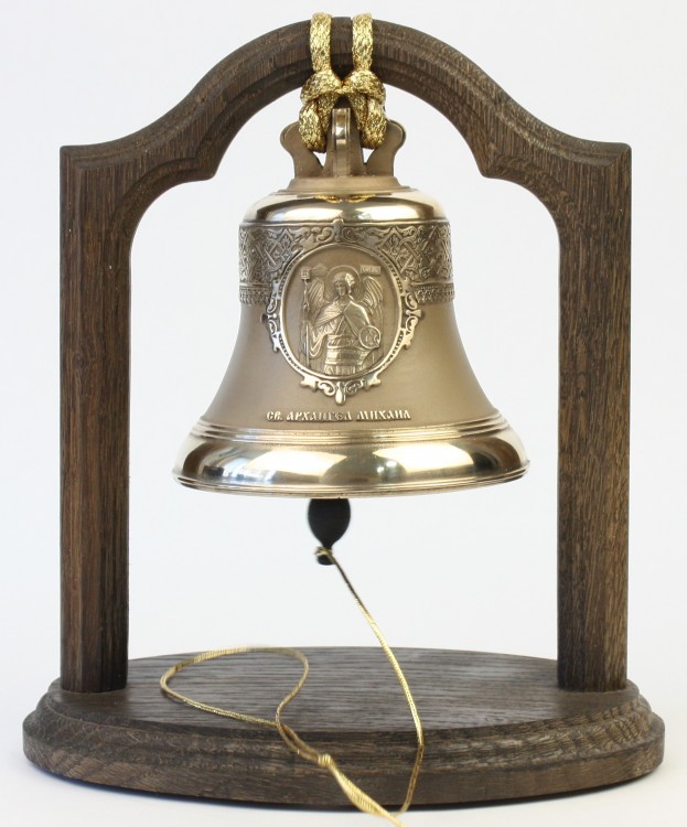 Колокол бронзовый на подставке "Архангел Михаил" d12 см, 1 кг