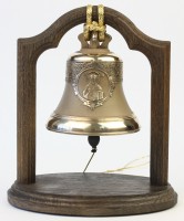 Размеры: 20 х 14 х 25 см. Материал подставки: массив дуба. Размеры колокола: диаметр 12 см, высота 12 см. Вес 1 кг. Материал колокола: колокольная бронза. Производство: Художественная колокололитейная мастерская, Россия.